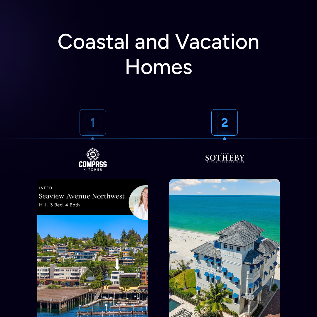 - Emphasize beachfront, lakefront, and vacation rentals to appeal to coastal living buyers.