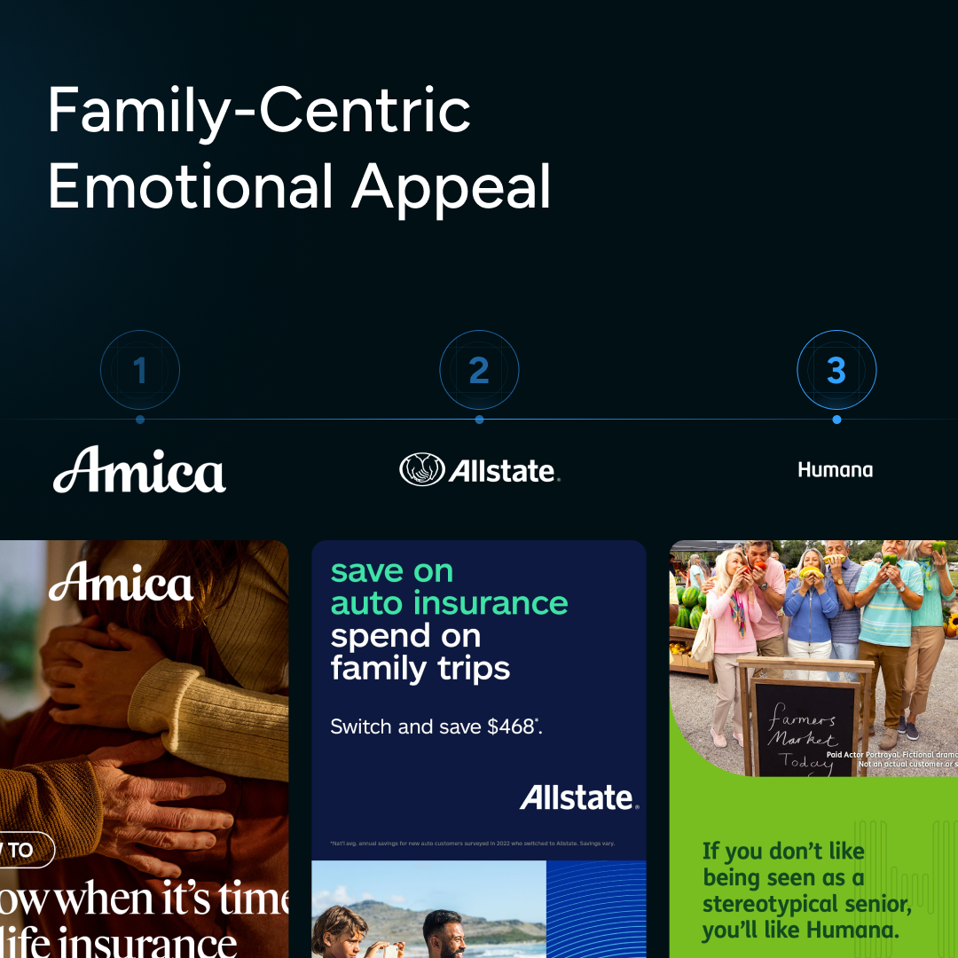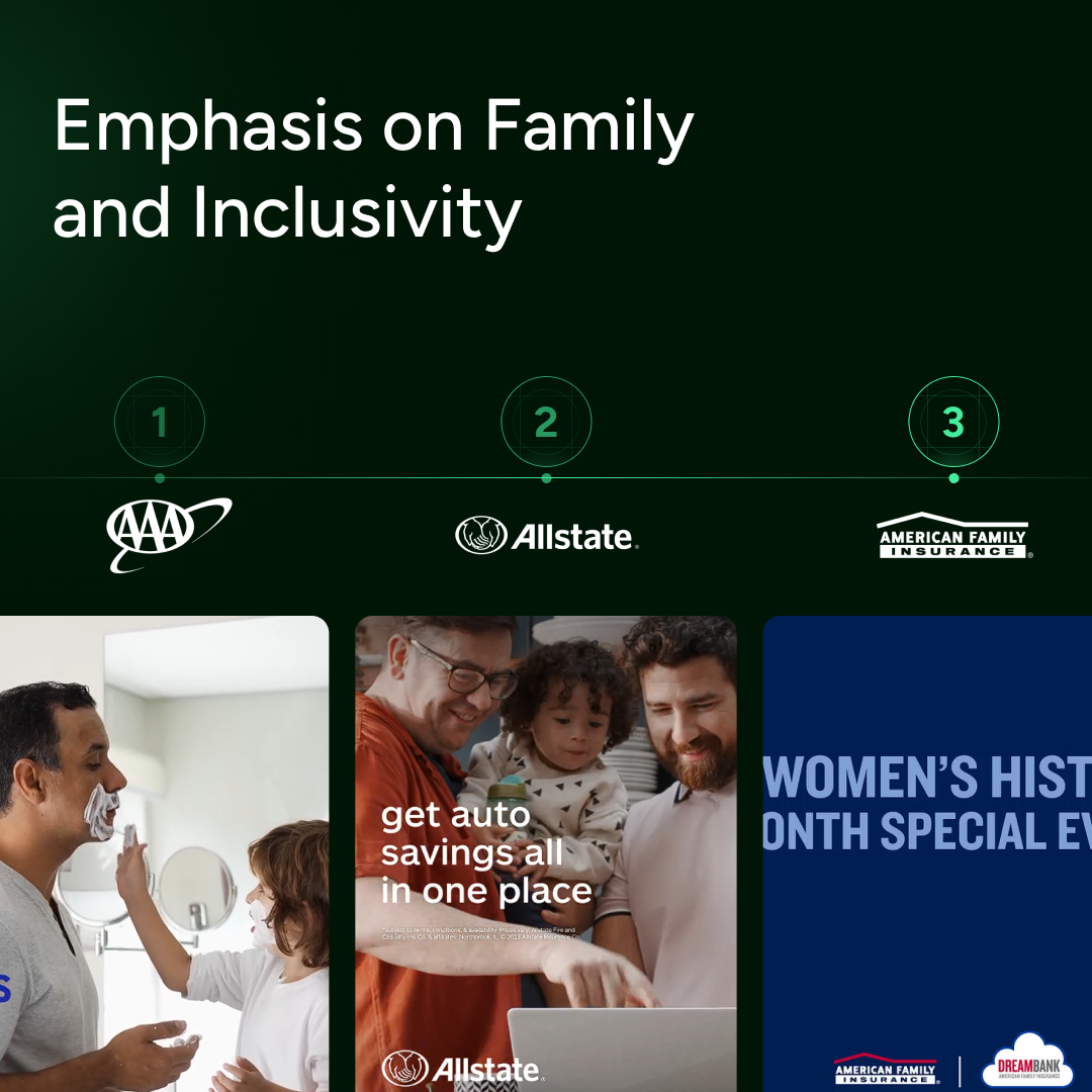 The video use of Emotional Narratives, such as family and inclusivity, parents and aging, and newborns was a common theme among assets and shown across more than a dozen insurance companies.