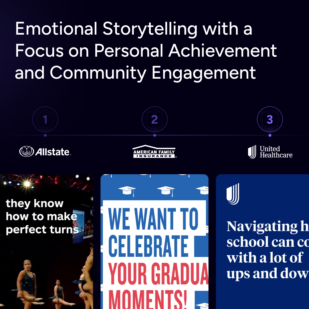 A third video trend was emotional storytelling that focused on personal achievement and community engagement. These ads had a narrative style to appeal to consumers. American Family Insurance ran ads celebrating graduations, and encouraging viewers to share their own achievements with a specialized hashtag.