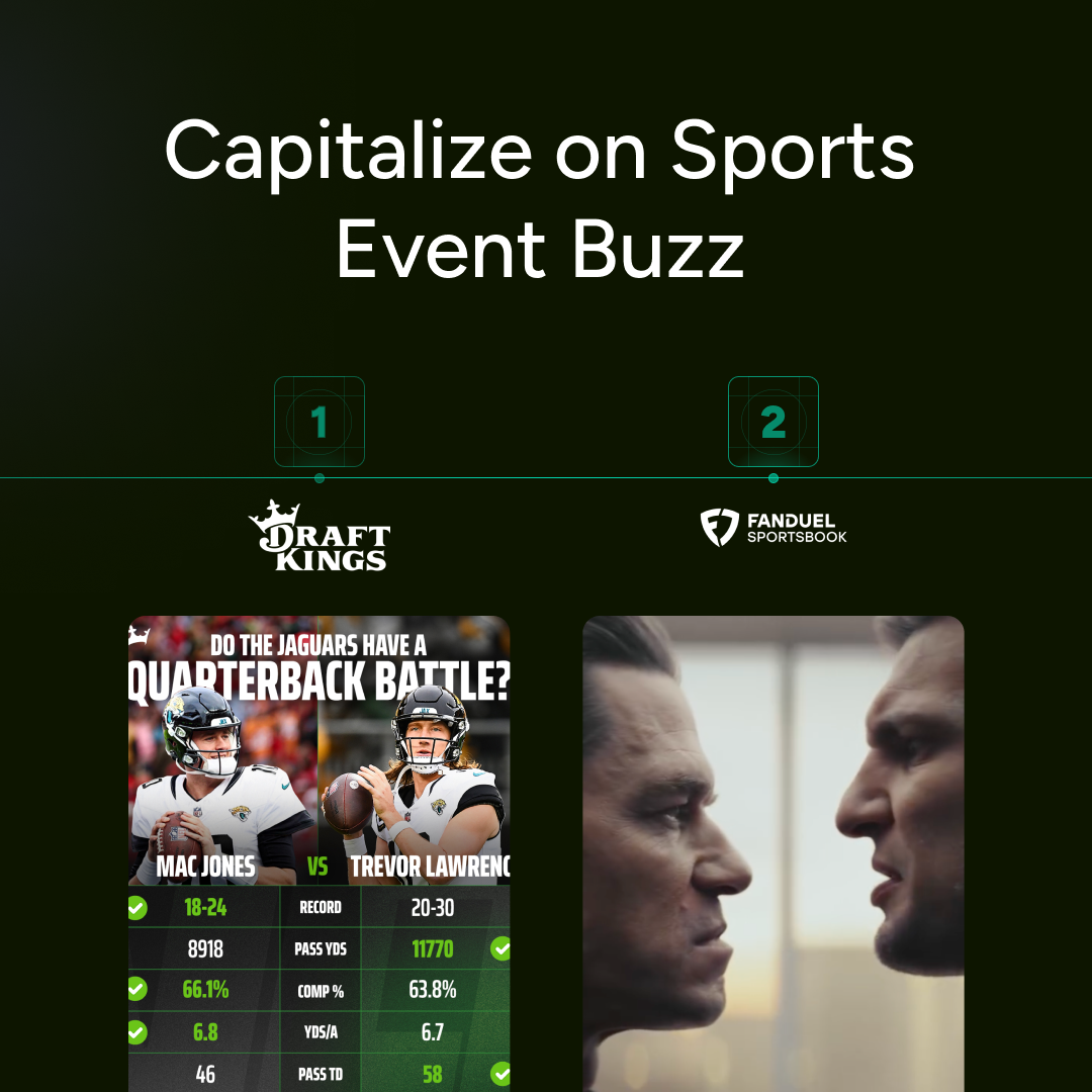 DraftKings Sportsbook, for instance, grabs attention with eye-catching image ads boasting, “NFL Best Ball is back and crowning TWO MILLIONAIRES 🏈 Draft a team and get a FREE ticket to play for a share of $15 Million this season 🔥.” Meanwhile, FanDuel Sportsbook stands out with dynamic video ads proclaiming, “Bet the NBA on FanDuel - North America's #1 Sportsbook.”