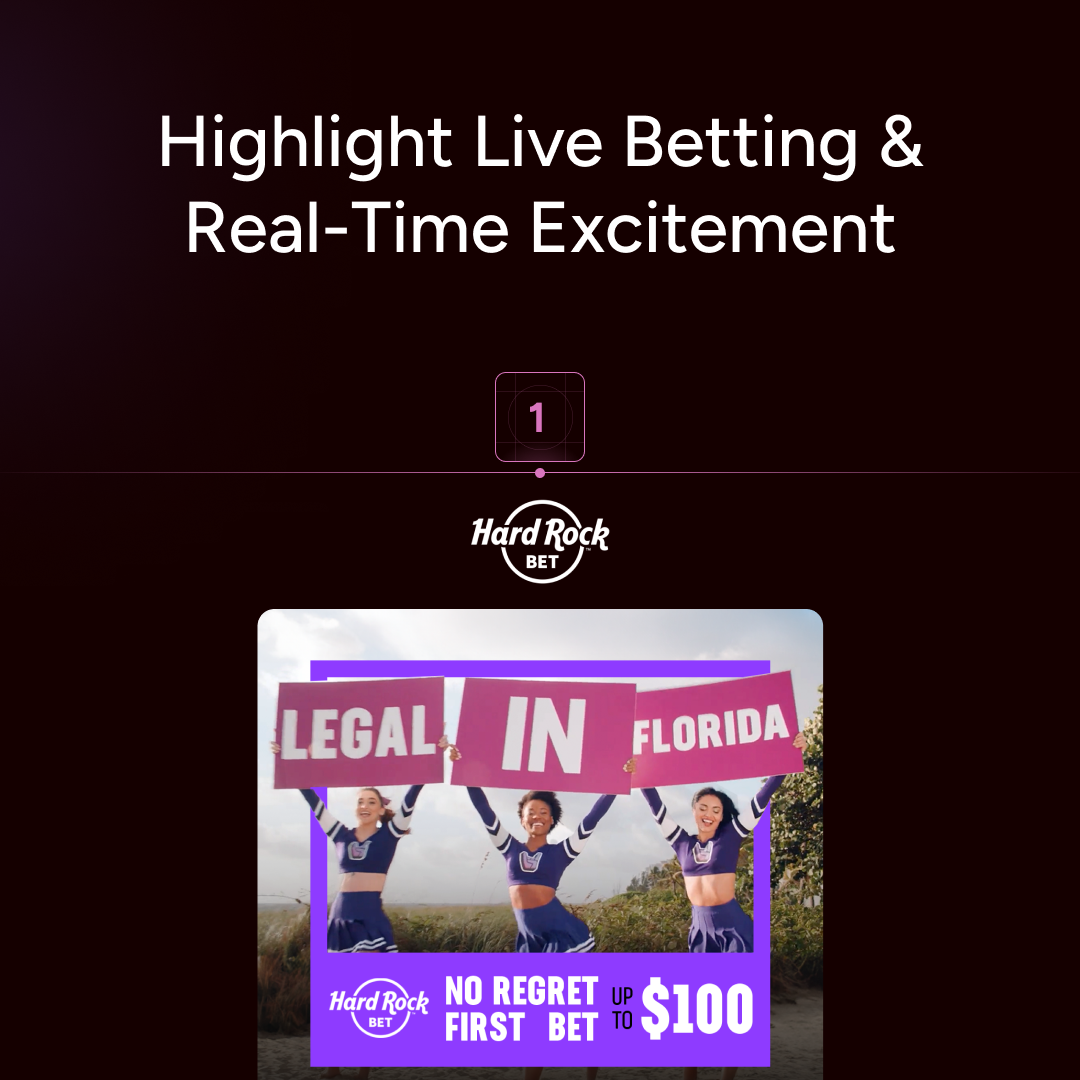 For example, Hard Rock Bet’s ad, “LEGAL IN FLORIDA. Bet on your favorite teams with Hard Rock Bet,” embodies this approach.