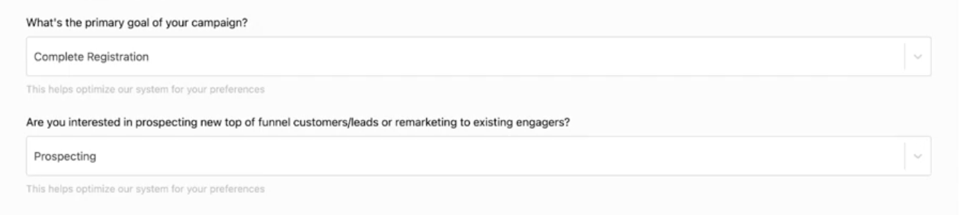 Define your goals for the campaign—whether you're aiming for completed registrations, purchases, or another optimization target. Decide on your audience: will you be reaching out to a new cold audience or a remarketing group that’s already familiar with your brand?
