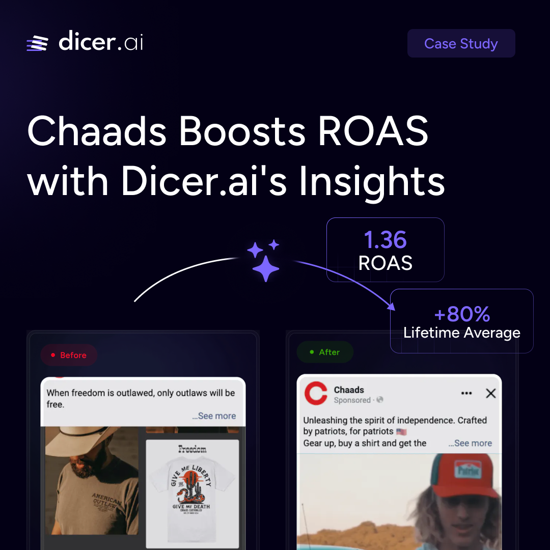 Chaads, struggling to connect with diverse audiences, turned to Dicer.ai. By analyzing video content and suggesting culturally resonant creatives, Dicer.ai helped Chaads achieve a nearly 80% increase in ROAS, demonstrating the power of AI in enhancing ad effectiveness across different customer segments.